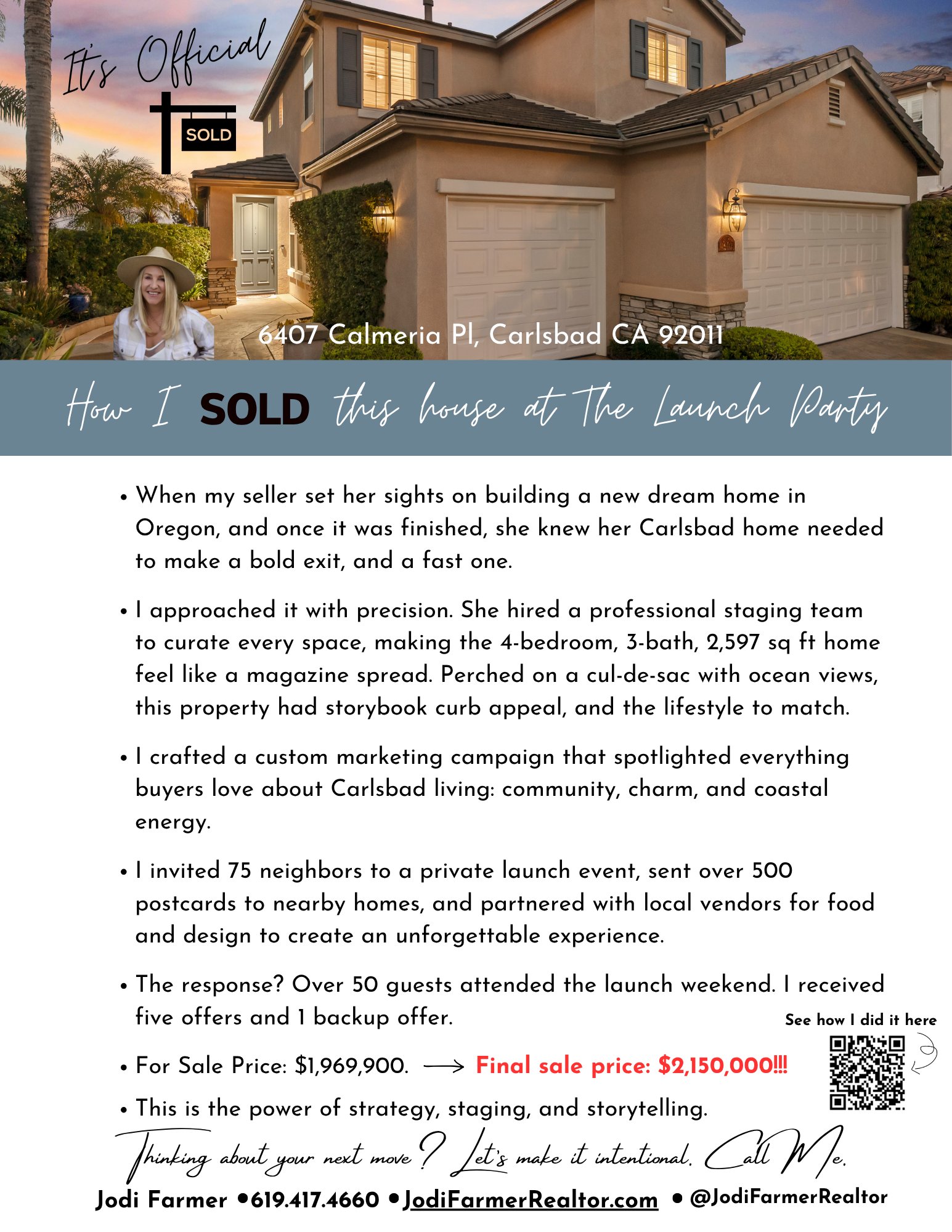 When it’s time to list, I bring a marketing-first approach that includes guided staging, professional photography, cinematic video, and social media promotion. I advise on the right improvements, price your home strategically, and negotiate powerfully to ensure you get top dollar.